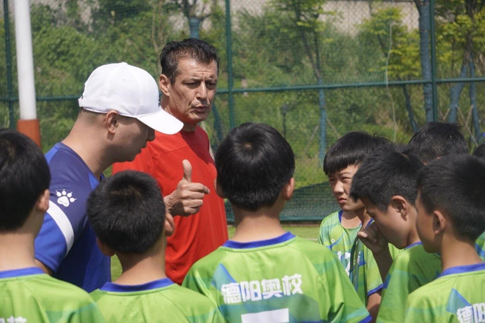 ▲尼诺・勒马指导德阳奥校孩子们踢球四年来,他不仅带领德阳青少年队在省运会上取得优异成绩,更把家安在了德阳。如今他已完全适应当地生活,甚至爱上了辣味美食。